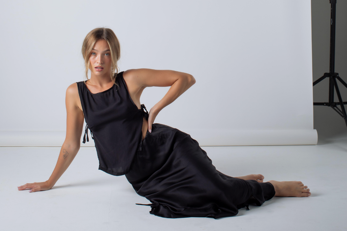 Made from 100% viscose in a deep, sleek midnight black, lightweight, breathable, and with a natural drape that moves the way a good night does. Effortlessly.
