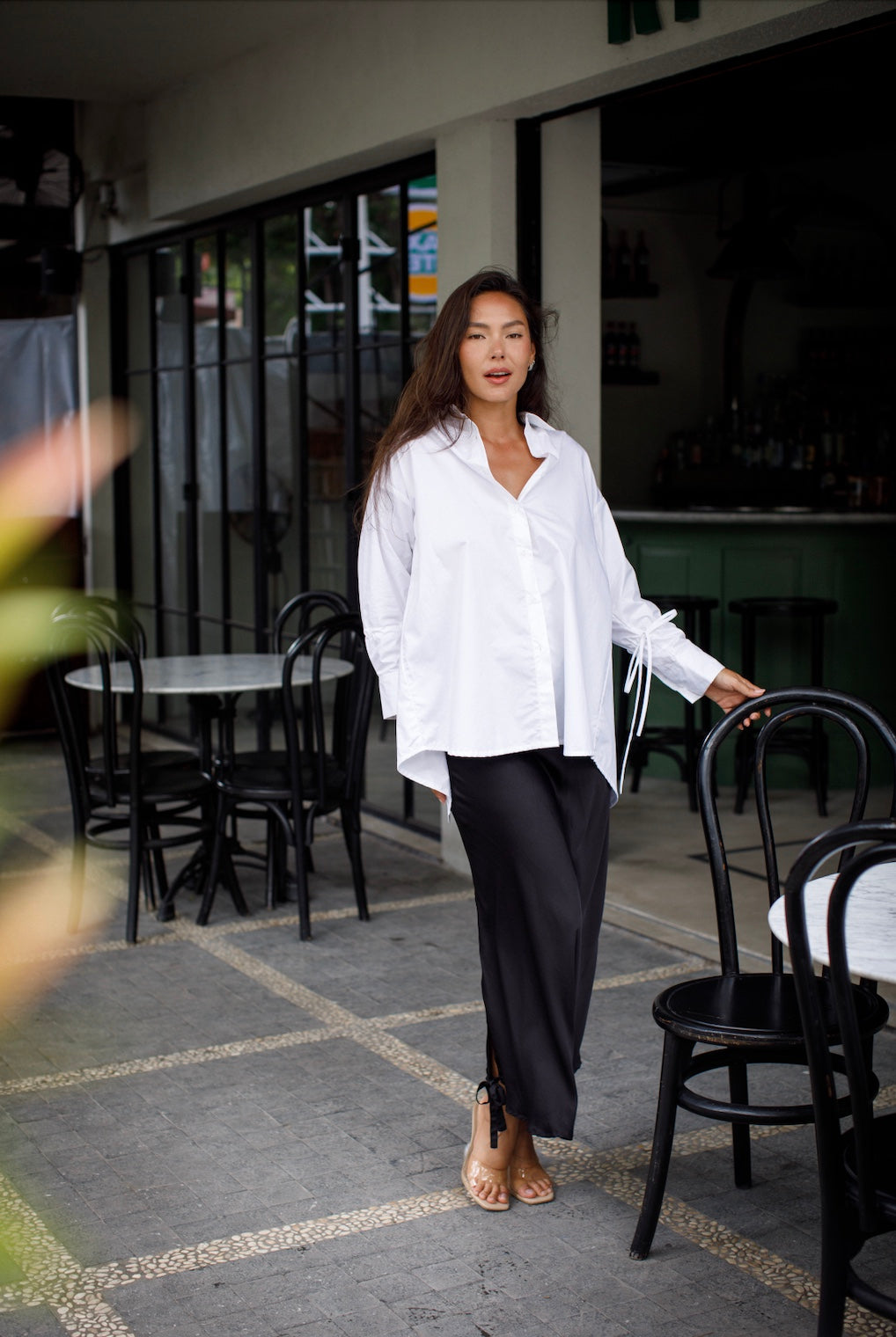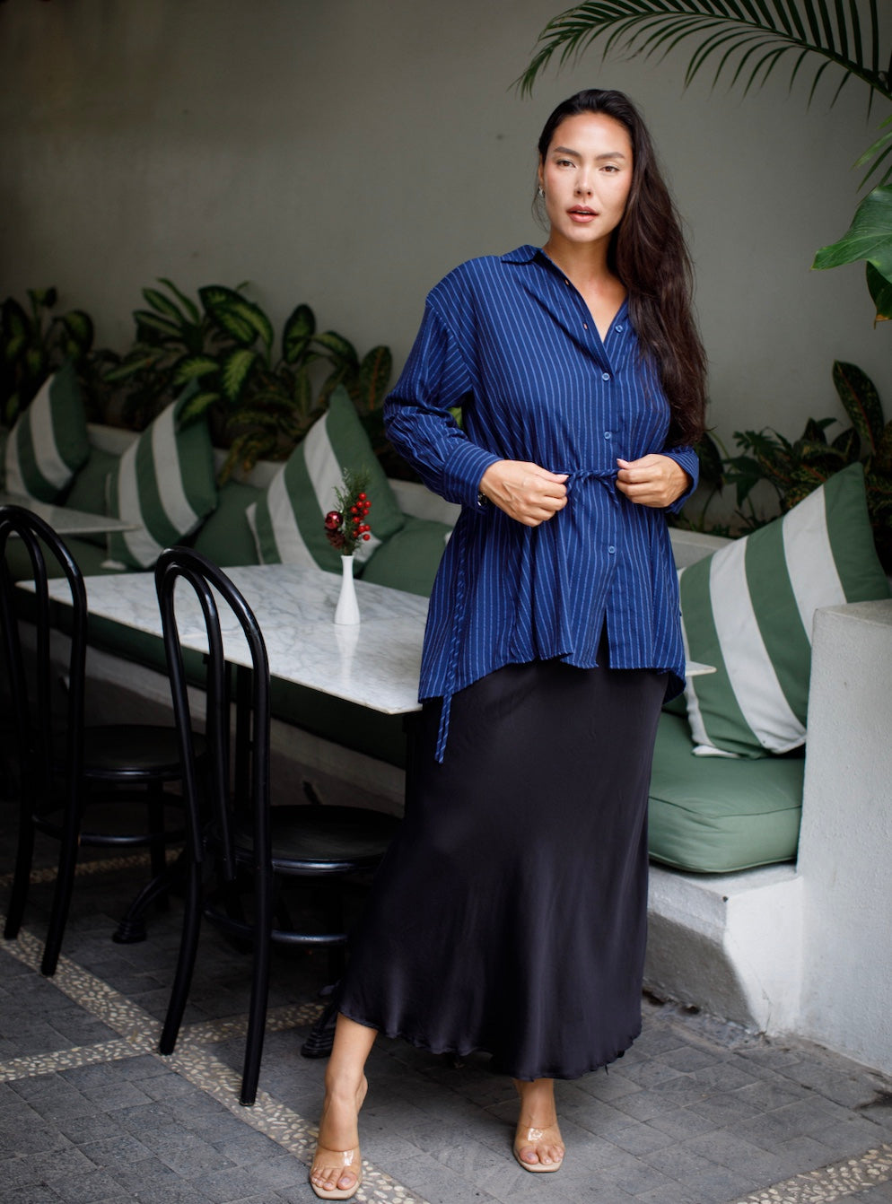 Cut and sewn by hand in a small family studio in Bali. Limited pieces, made slowly, made well.